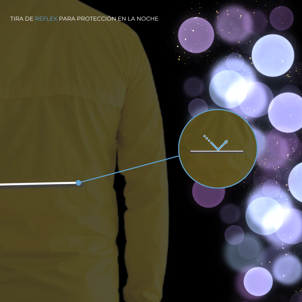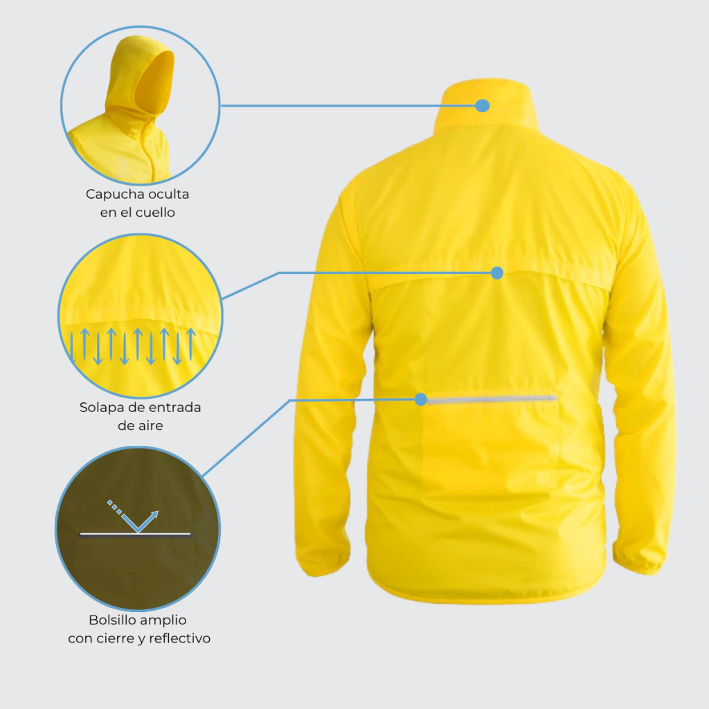 Prenda ultraliviana que al compactarla ocupa muy poco espacio, no más que un puño, lo que la hace imprescindible para viajes ya que ocupa muy poco lugar en la mochila. Ideal para todo tipo de deportes y urbana. Te entra en la palma de la mano cuando está plegada. Liviana, práctica, cómoda, diseño único Corvus. Con reflectivo atrás la hace una campera segura para correr de noche. Su capucha oculta en el cuello transfiere confianza ante la mínima amenaza de lluvia o viento. Con amplios bolsillos laterales con cierre para llevar tus pertenencias y el de atrás con cremallera para llevar accesorios seguros. Banda elastizada abajo y en los puños te ofrecen ceñimiento al cuerpo para que no entre el viento. El cuello alto te asegura que no ingrese viento al cuerpo. La capucha posee cordón de ajuste para que quede todo el cuerpo herméticamente protegido.